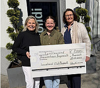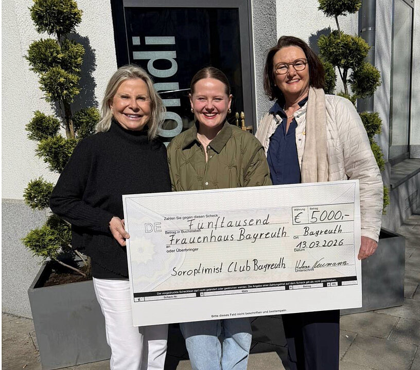 Seit vielen Jahren leistet unser Club eine ansehnliche finanzielle Unterstützung einer Hauswirtschaftskraft für das Frauenhaus Bayreuth. Auch dieses Jahr wurden wieder 5.000 Euro in Form eines Schecks von unserer Präsidentin Helene Neumann und der Schatzmeisterin des Bayreuther Hilfswerks Soroptimist e.V. Dr. Christiane Rauch an die Leiterin des Frauenhauses Lara Erben überreicht.
